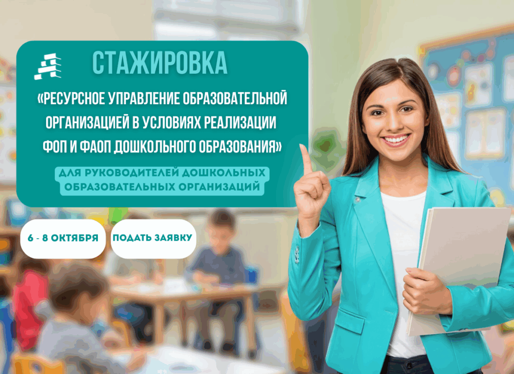 С 6 по 8 октября для руководителей дошкольных образовательных организаций пройдет стажировка по теме «Ресурсное управление образовательной организацией в условиях реализации ФОП и ФАОП дошкольного образования». Мероприятие организовано кафедрой менеджмента в образовании Алтайского института развития образования им. А. М. Топорова в партнерстве с образовательными организациями – победителями профессиональных конкурсов.
