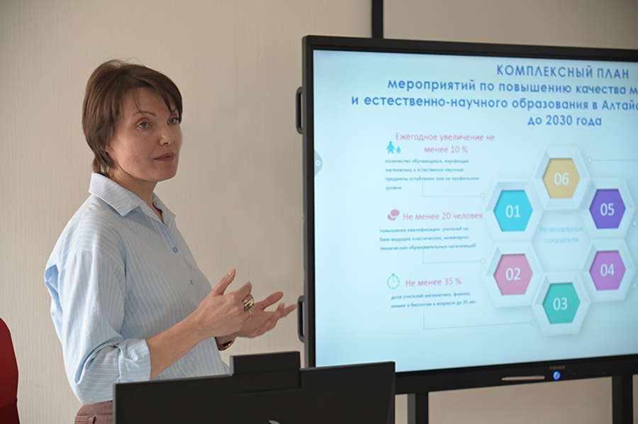 — Технологический суверенитет — тема, которая определяет будущее нашей страны. Она звучит не только в кабинетах министров, но и в каждой школе, — с этих слов начала выступление Олеся Кузнецова. Она рассказала, какие инструменты помогают Новоперуновской школе Тальменского района реализовывать план по повышению качества математического и естественно-научного образования. В их числе: центр образования «Точка роста», классы углубленного изучения предметов, курсы по биологии, физике и химии, внеурочная деятельность по математике и кружки, профориентационные встречи, взаимодействие с колледжами и аграрным вузом, профильные смены.