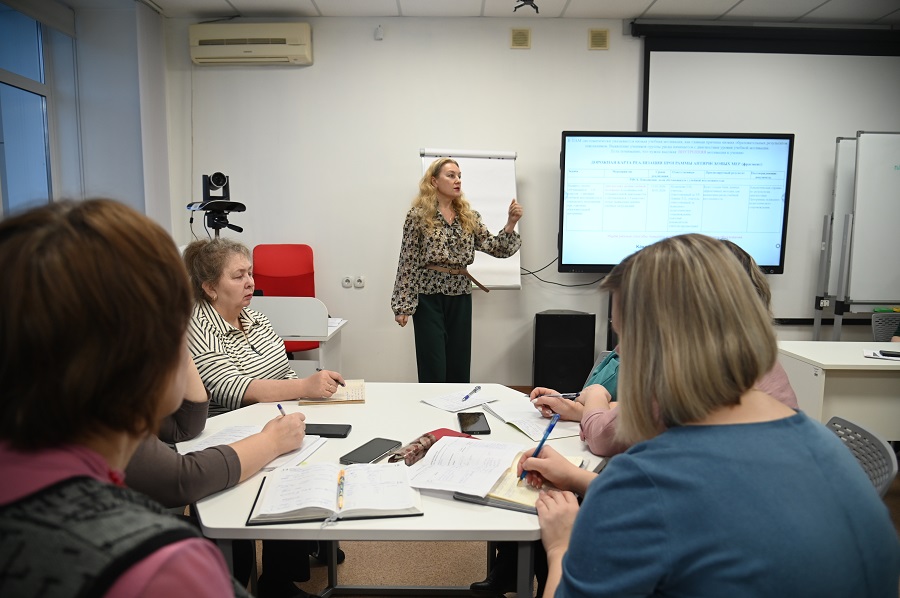 На практических занятиях слушатели осваивали методику разработки антирисковых программ, технологии работы с обучающимися из «группы риска», выполняли упражнения для работы в педагогической команде, делились своим опытом.