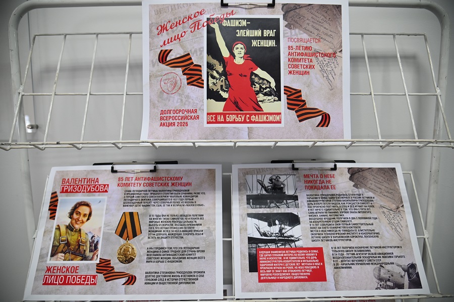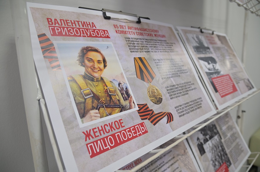 Еще в рамках заседания состоялась Всероссийская патриотическая акция Союза женщин России «Женское лицо Победы». В холле института была организована выставка плакатов, рассказывающих о подвиге советских женщин в годы Великой Отечественной войны, которые бесстрашно сражались на фронте и неустанно трудились в тылу. Олицетворение этого подвига – деятельность Валентины Гризодубовой. Акция – летопись народной памяти и знак глубокой признательности истинным патриоткам – бойцам, труженицам, солдатским женам и матерям.