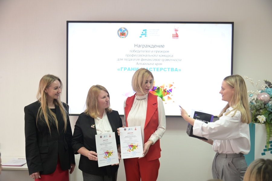 Особенной частью мероприятия стало торжественное награждение победителей и призеров региональных конкурсов «Грани мастерства» и «Мы – финансовые волонтеры» 2025 года. Участие в церемонии приняла руководитель Алтайского краевого центра финансовой грамотности Татьяна Колесникова. Она поблагодарила педагогов за участие в проектах, поддержанных региональной программой повышения уровня финансовой грамотности населения, и вручила им дипломы и ценные призы: фотопринтеры, ламинаторы, портативные и умные колонки, магнитно-маркерные доски и другие полезные гаджеты. Кроме того, все участники семинара-практикума получили комплекты финансовых игр для своих образовательных организаций.