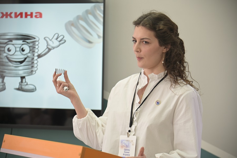 В «Блицтурнире» педагог предложила решения педагогических ситуаций повышения мотивации обучающихся и организации дисциплины в классе, основанные на индивидуальном подходе к ребёнку: раскрытие его сильных сторон, формирование чётких правил и обязательное взаимодействие с семьёй. А в ходе испытания «Брифинг», отвечая на вопрос о сотрудничестве школы и родителей, она представила проект «Мамина школа», подчеркнув, насколько важно выстраивать доверительный контакт с семьёй с самого начала обучения.
