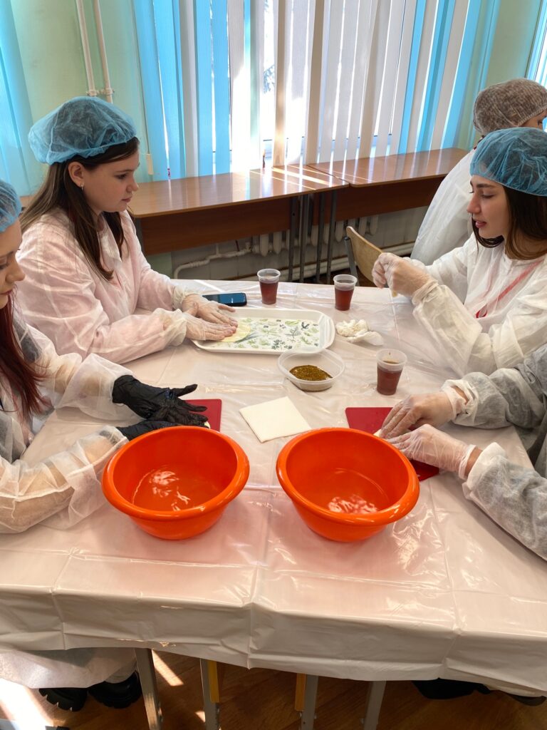 В ходе всего дня дети и педагоги включались в изготовление сетей для участников СВО, взаимодействуя с волонтерами АНО «Помощь рядом» Смоленского района.