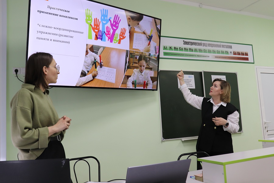 Участники стажерской практики узнали, как превратить урок физкультуры в урок тренировки внимания, памяти, мышления, снятия эмоционального напряжения и снижения утомляемости. Отмечалось, что упражнения нейрогимнастики и кинезиологии на уроках физической культуры или занятиях учителя-дефектолога стимулируют межполушарное взаимодействие, повышая скорость передачи нервных импульсов. Учитель физической культура Александра Бабичук и учитель-дефектолог Галина Таболина представили примеры использования таких упражнений и результаты их влияния на учебную мотивацию.