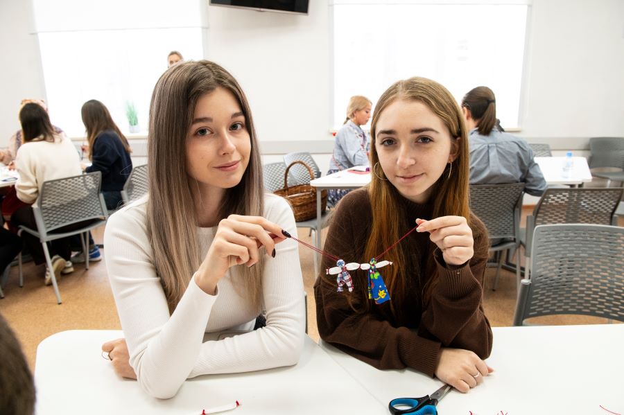 Детская школа искусств «Традиция» также провела мастер-классы по изготовлению свадебных оберегов: участники украшали подковы, изготавливали кукол-берегинь и расписывали фоторамки в виде наличников.