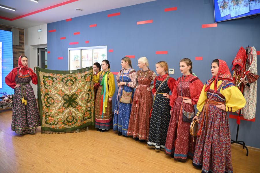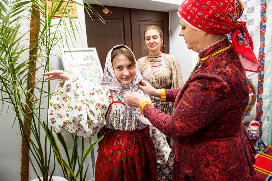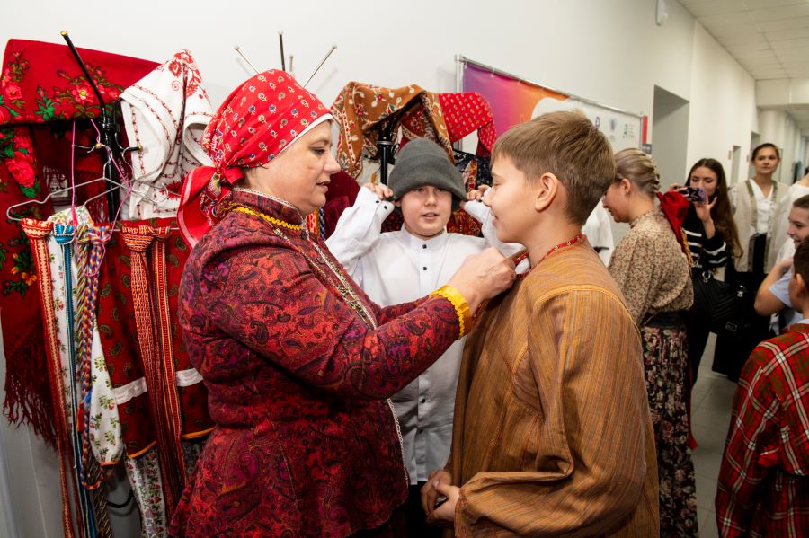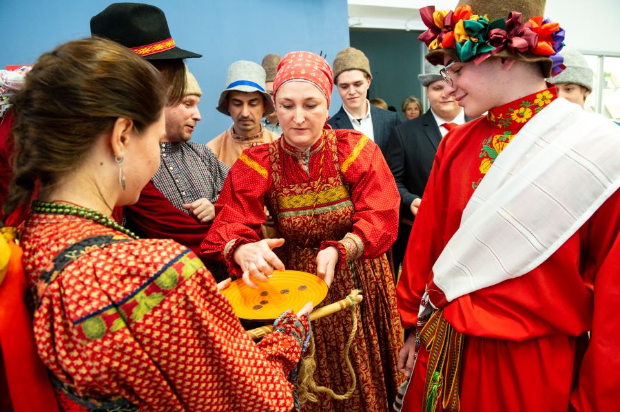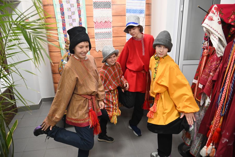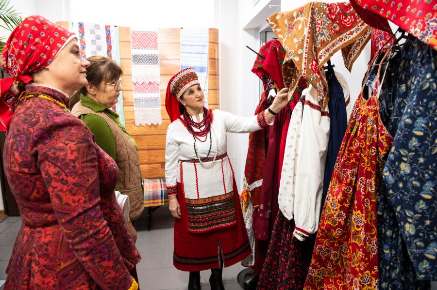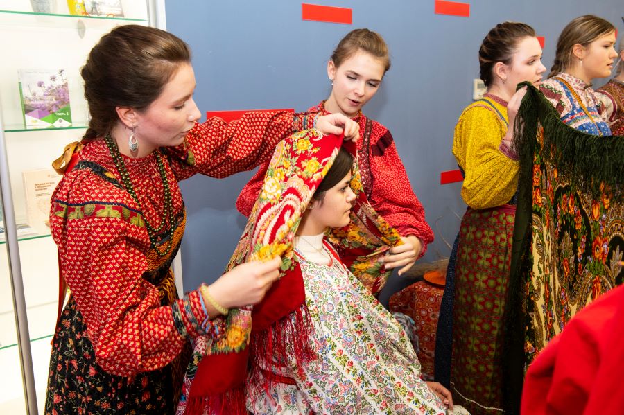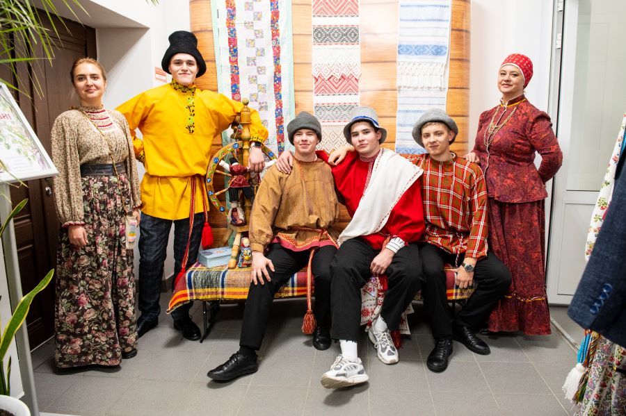 Примерить народные костюмы все желающие могли в фотозоне, организованной Детской школой искусств «Традиция». Там были представлены атрибуты русских переселенцев: пряха, вышитые рушники, лоскутное шитье. Парни с удовольствием фотографировались в рубахах, девушки – в сарафанах.