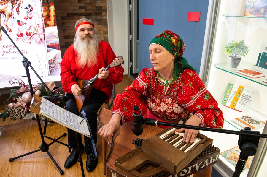 С музыкальными номерами выступали творческие коллективы национальных культурных автономий и объединений: образцовый детский фольклорный ансамбль «Беседушка» Детской школы искусств «Традиция», семейный ансамбль Бабушкиных «Час да по часу», ансамбль национальных ударных инструментов «Эрибуни», клубы мордовской культуры — ансамбли «Аше килей» и «Умарина», артист ансамбля народной песни «Вечёрки» Государственной филармонии Алтайского края Алексей Кашкаров. Ведущая презентации — Наталья Рева, режиссер Алтайского государственного Дома народного творчества.