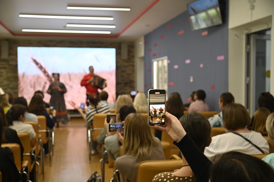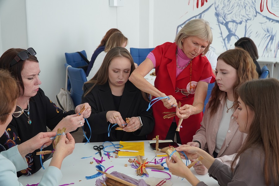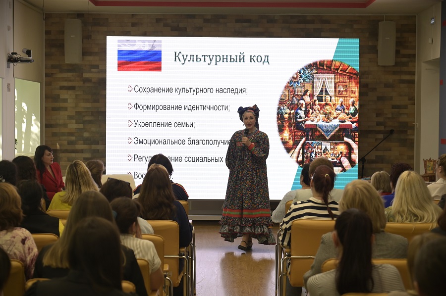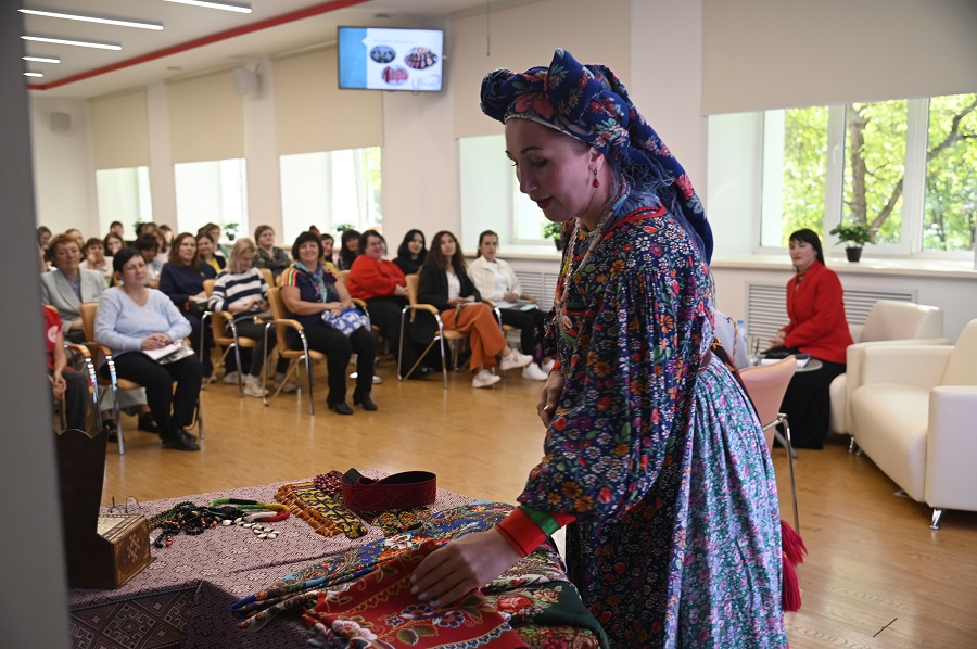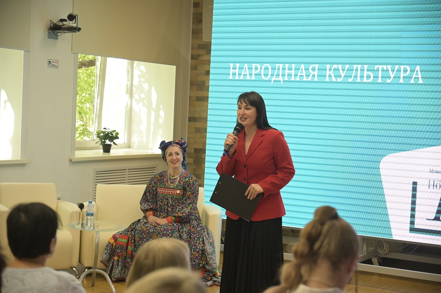 — Тема сегодняшней методической встречи — народная культура. Именно приобщение к народной культуре становится тем вектором воспитания, потенциал которого огромен, и не использован в полной мере в системе образования. Народная культура дает людям силу, уверенность, и понимание своего истинного предназначения в этом мире, — отметила Татьяна Райских, организатор и модератор мероприятия, заместитель директора АИРО.