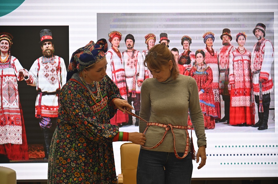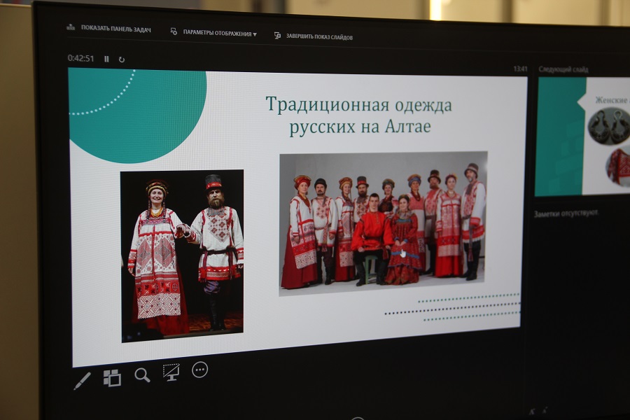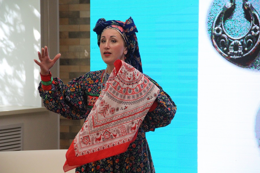 Речь шла и о народном костюме. Анна Терентьева рассказала про русский костюм и аксессуары, объяснила их смыслы.