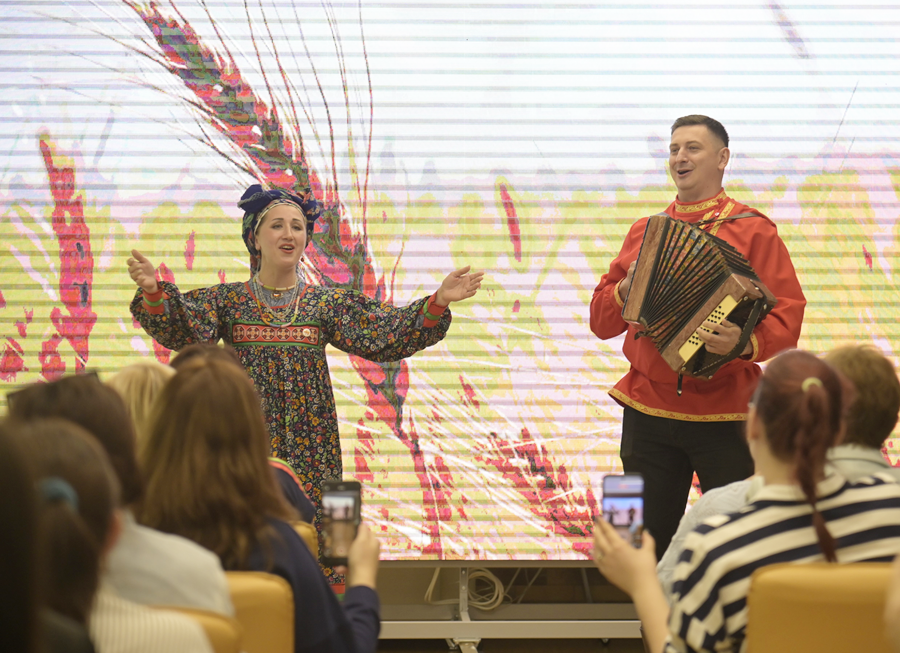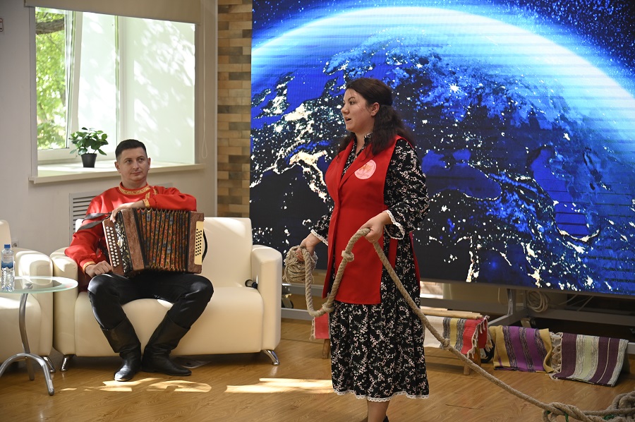 Вместе с гармонистом Алексеем Бубновым Анна Тереньтева провела тренинг по организации и проведению традиционных русских хороводных игр.