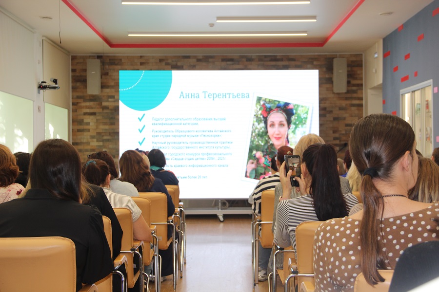 19 сентября в Алтайском институте развития образования им. А. М. Топорова прошла вторая в этом году методическая встреча в рамках образовательного проекта «Новый взгляд». Более 70-ти педагогов и руководителей из разных городов и районов Алтайского края встретились с коллективом Центра эстетического воспитания «Песнохорки».
