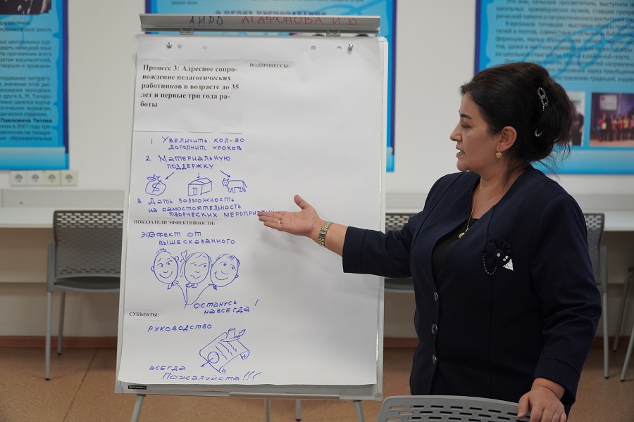 Заместитель директора АИРО Ирина Чеверда провела в рамках этой программы практико-ориентированное занятие «Управление процессами в образовании: совершенствование кадрового потенциала образовательной организации в современных условиях». Решая кейс по устранению дефицита педагогических кадров и привлечения молодых педагогов в школы, участники разработали меры поддержки, способствующие притоку кадров. Кроме того, они познакомились с опытом Алтайского края по решению кадровой проблемы. Среди мер поддержки — адресное методическое сопровождение и консультирование педагогов в первые три года работы, организационное сопровождение молодых педагогов, их привлечение в профессиональные конкурсы, мероприятия и сообщества, разработка программ адаптации.
