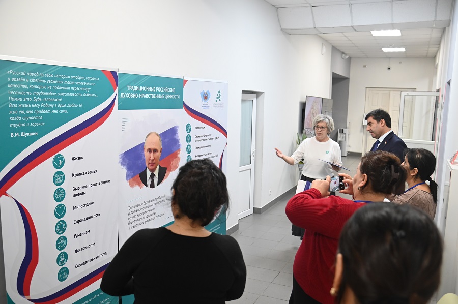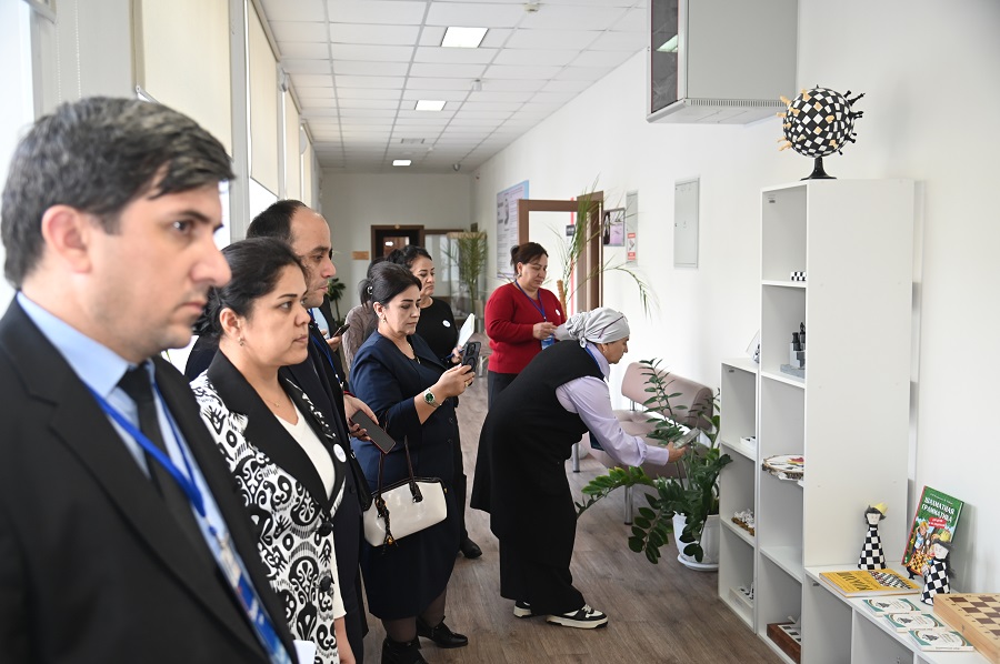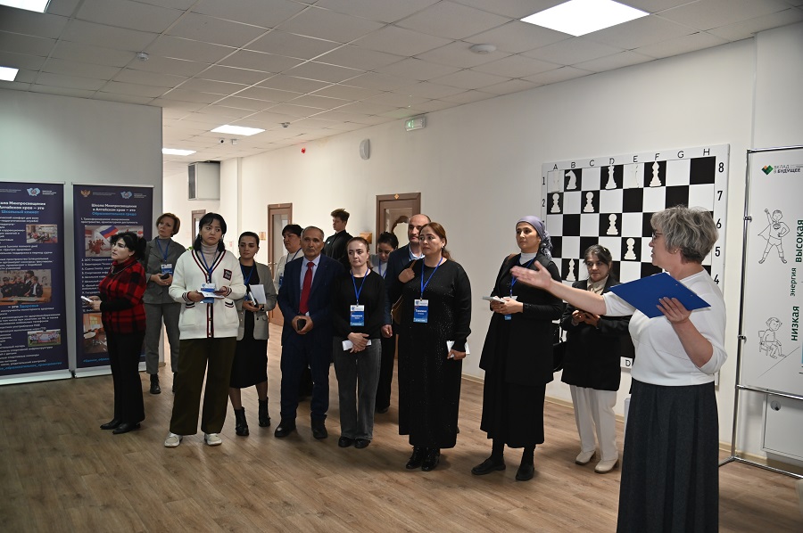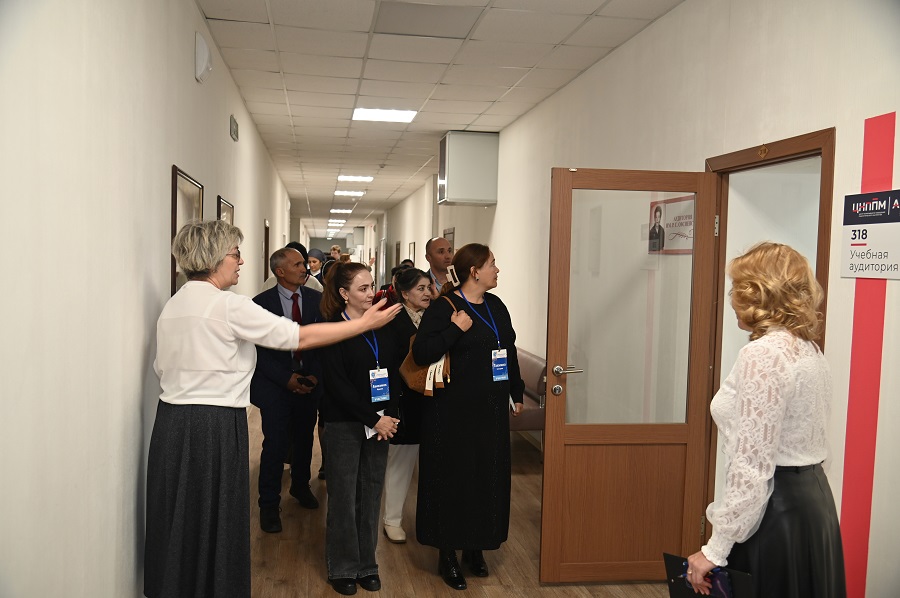 Гостям показали учебные именные аудитории педагогов-просветителей, зал Президентской библиотеки и библиотечно-информационный центр, компьютерный класс, шахматную лабораторию и коворкинг-зону «Молодые педагоги». Также гости обратили внимание на картины и муралы на стенах аудиторий и коридоров.