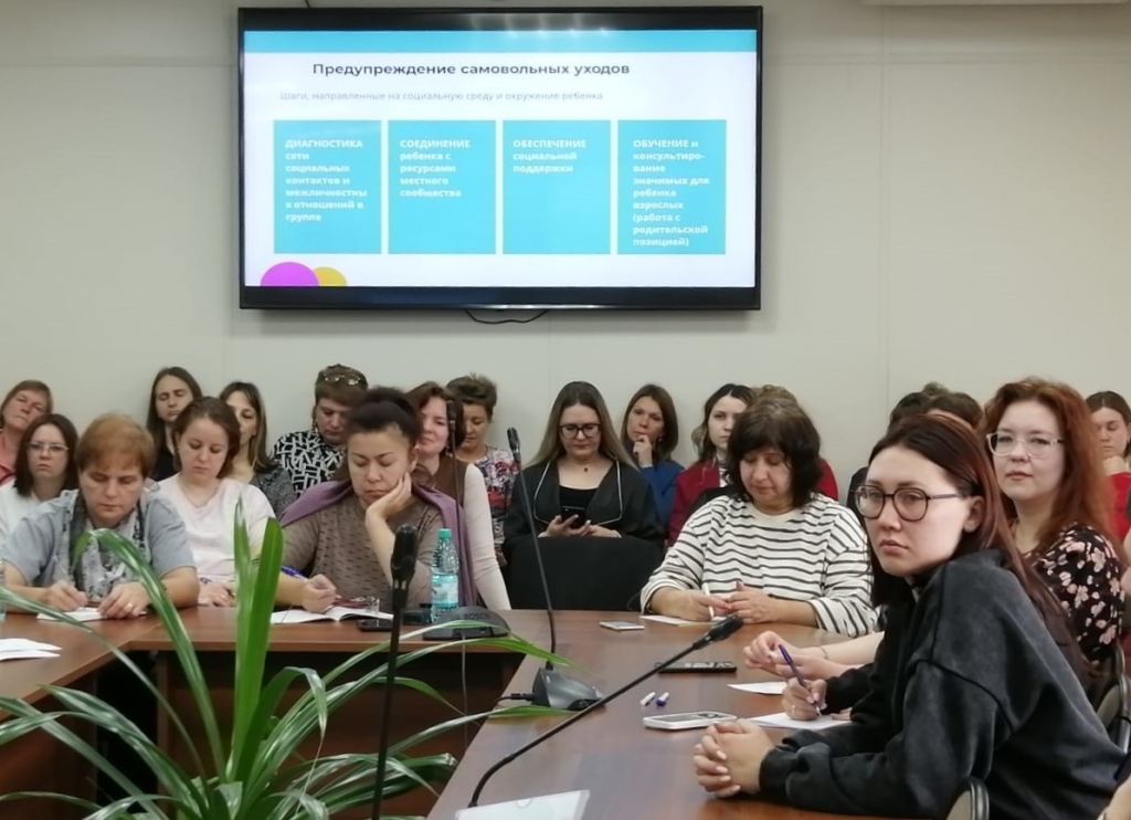 Для обсуждения аспектов межведомственного взаимодействия при организации адресной помощи несовершеннолетним с трудностями в обучении, развитии и социальной адаптации были приглашены специалисты из учреждений социальной защиты, следственного комитета, полиции, а также преподаватели государственного медицинского и педагогического университетов.