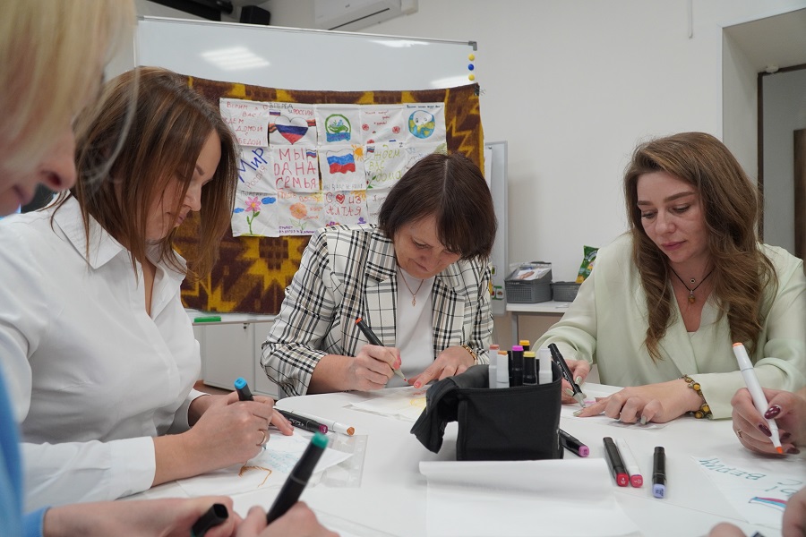 Старшие воспитатели барнаульского детского сада № 261 Ольга Давыдова и Оксана Сазонова поделились, как воспитывать гражданственность через творческую деятельность. Они представили общероссийскую технологию «Живые письма дошкольников»: дети рисуют акриловыми красками и маркерами на ткани, из которой потом педагоги шьют одеяла для бойцов СВО. Участники фестиваля присоединились к акции детского сада и передали бойцам трогательные послания и рисунки.