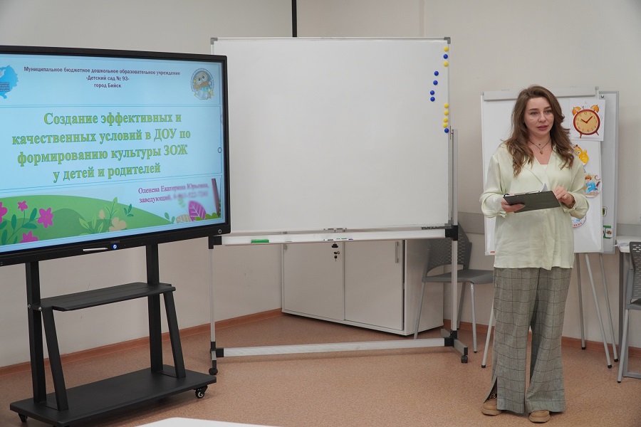 Зоя Колотовкина, педагог дополнительного образования детского сада № 93 из Бийска, представила форматы работы с детьми и их родителями на тему «Наше здоровье в наших руках». Она продемонстрировала, как в интерактивной форме можно рассказывать о важности режима дня, правильного питания, гигиены и других аспектах здорового образа жизни.