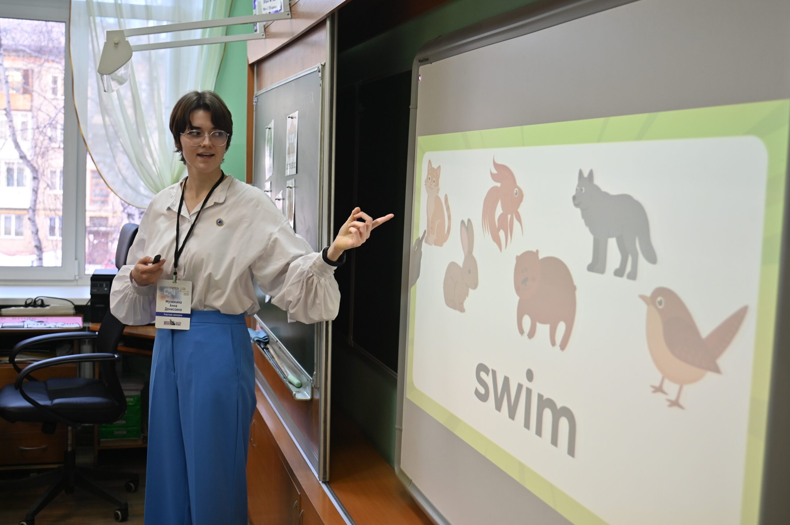 На уроке английского языка в третьем классе по теме «Дикие и домашние животные» она выстроила занятие на сочетании игровых и дидактических методов, применяя технологию интервального повторения. Через речевые ситуации, жесты и звукоподражание, учащиеся не только осваивали лексику, но и формировали устойчивые ассоциации.