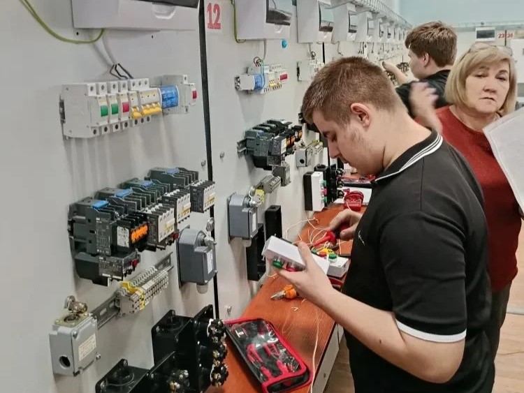 Под руководством Татьяны Замятиной, опытного наставника и мастера производственного обучения, а также наставников из числа обучающихся второго курса, первокурсники отработали навыки, необходимые для сдачи демонстрационного экзамена по компетенции «Электромонтаж». Он включает монтаж этажного распределительного щита и осветительной сети, а также выявление неисправностей испытания электроустановок.