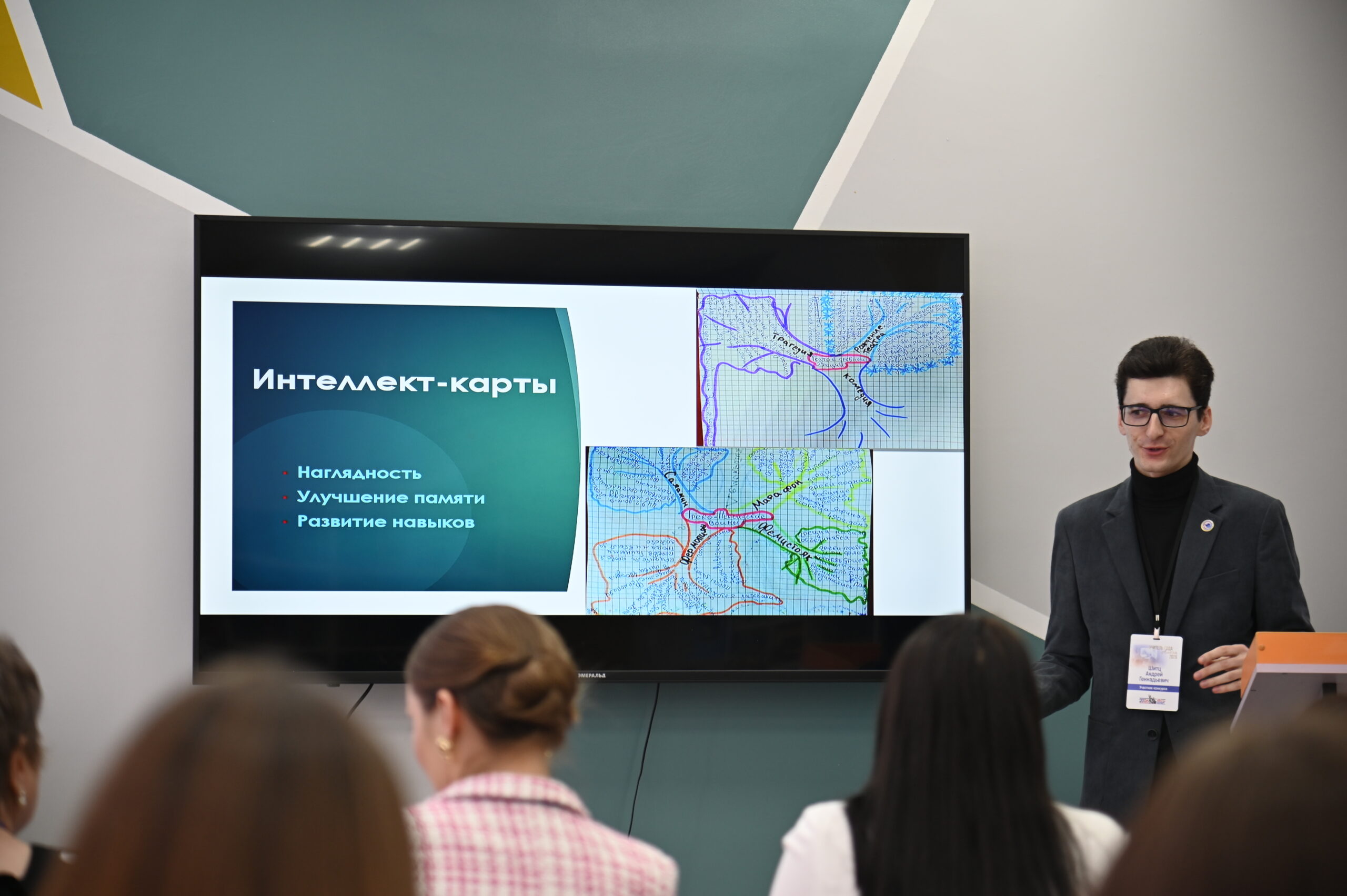 На испытании «Презентация из опыта работы «У меня это хорошо получается» Андрей Шитц представил жюри свои педагогические находки. Учитель рассказал, что благодаря методу интеллект-карт постепенно меняется и качество ответа: вместо заученного текста — осмысленное объяснение. А кроме этого — активизируется познавательная деятельность учеников и повышается их мотивация.