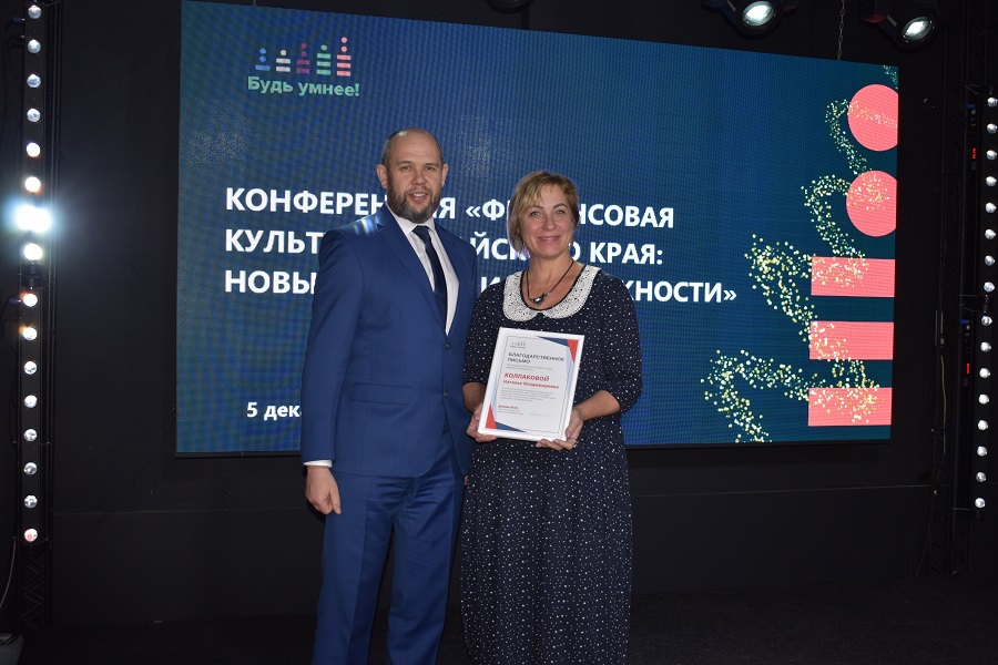 Руководитель лаборатории экономической педагогики Алтайского института развития образования им. А. М. Топорова Наталья Колпакова поделилась, как с помощью реализации проектов по финансовой грамотности формировать лидеров нового поколения среди молодежи и педагогического сообщества, а также презентовала результаты апробации парциальной программы «Содержание и методика формирования основ финансовой грамотности детей старшего дошкольного возраста». Заведующие детскими садами, которые приняли участие в апробации этой программы, получили благодарственные письма Министерства образования и науки Алтайского края и Благодарности Федерального методического центра по финансовой грамотности системы общего и среднего профессионального образования Национального исследовательского университета «Высшая школа экономики».