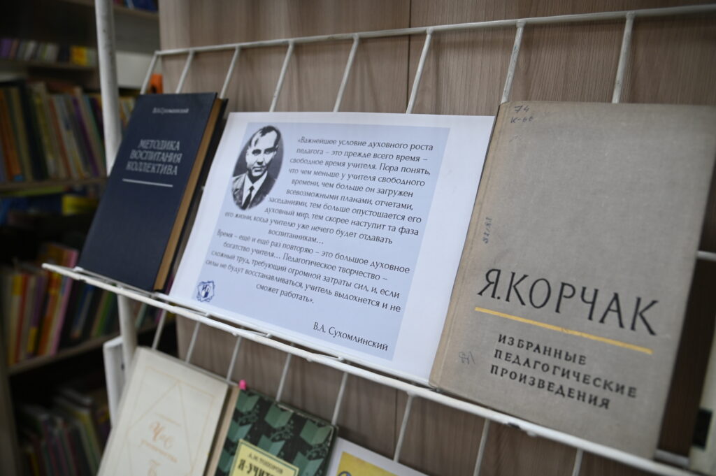 Одним из ярких представителей педагогов-новаторов является Василий Сухомлинский. Он строил процесс обучения как радостный труд и уделял большое внимание формированию мировоззрения учащихся. Педагог придавал важное значение слову учителя, художественному стилю изложения, сочинению сказок и художественных произведений вместе с детьми, чтению книг. Его работы тоже представлены на выставке.