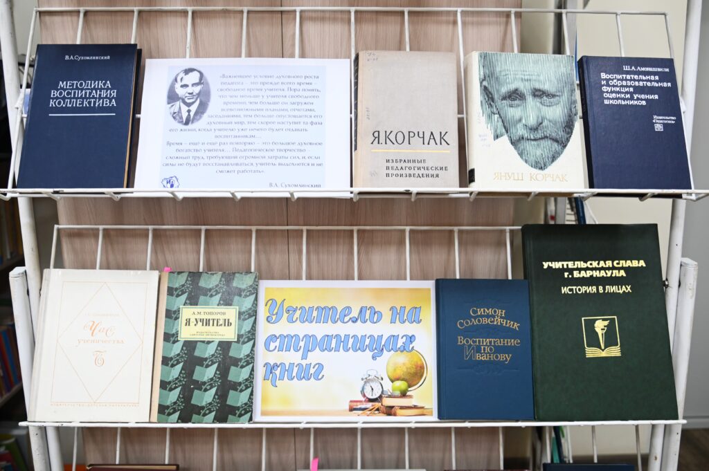 В библиотечно-информационном центре Алтайского института развития образования им. А. М. Топорова подготовлена книжная выставка «Учитель вечен на земле», посвященная педагогам.