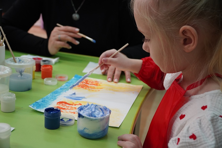 Воспитатель Елена Онегова подчеркнула, что рисование отлично подходит для совместной работы с детьми. Во время занятия юные художники под руководством старших наставников создавали пейзажи, вдохновляясь картиной Исаака Левитана «Золотая осень».