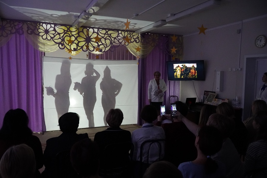 Музыкальный руководитель Ирина Цыкоза совместно с коллегами устроила представление теневого театра «Магия света и тени». Гостям предложили угадать картины известных художников: «Рыболов» Василия Перова, «Александр Невский» Павла Корина, «Богатыри» и «Алёнушка» Виктора Васнецова, «Девочка с персиками» Валентина Серова, «Стрекоза» Ильи Репина и «Дождь в дубовом лесу» Ивана Шишкина.