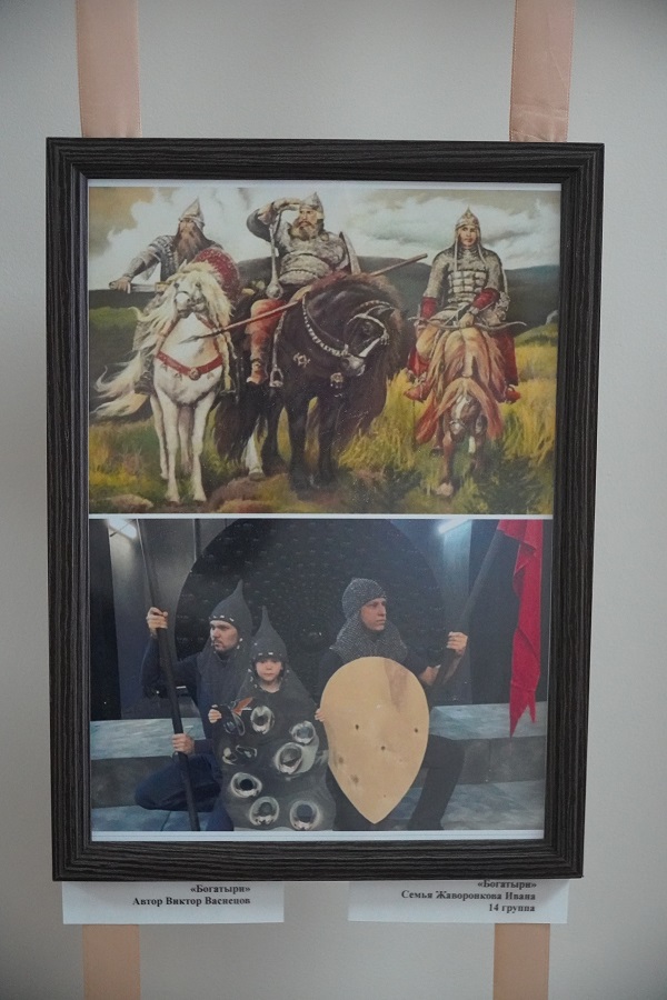 Особый интерес гостей вызвала серия фоторабот «Войди в картину», созданная детьми и родителями по мотивам известных полотен. Кто-то, например, «оживлял» «Аленушку», а кто-то — «Девочку с персиками» и даже «Богатырей». Такой прием глубже знакомит детей с произведениями живописи и развивает наблюдательность.